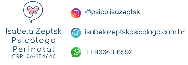 Sou Isabela Zeptsk, psicóloga clínica e especialista em Psicologia Perinatal & Obstétrica (CRP 06/154640), com foco em gestação, parto, pós-parto, planejamento familiar e luto perinatal.